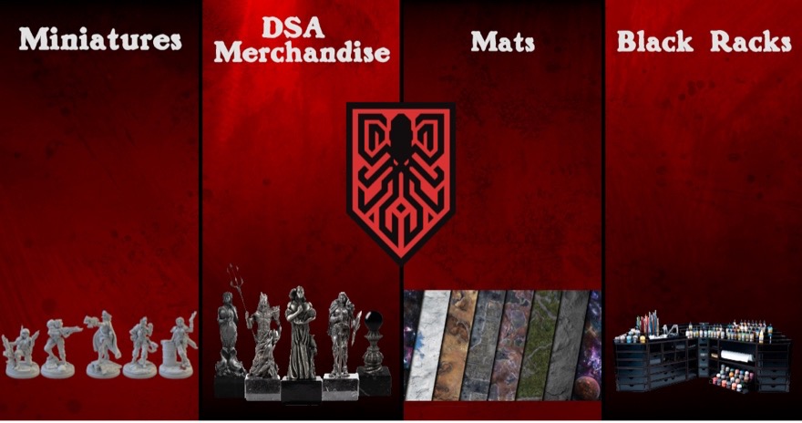 Various accessories, organizers, black racks and bases, you‘ll surely find. You like “The Dark Eye”?  You've come to the right place! Visit us at our shop: www.krakenwargames.com“   You want to take unforgettable memories of SPIEL Essen 23 home with you? Then we have the right stuff for you as well. Cool cups, great mousepads or playmats or nice shirts and much much more. Stop by at:  https://krakenwargames.com/SPIEL-Essen-2023