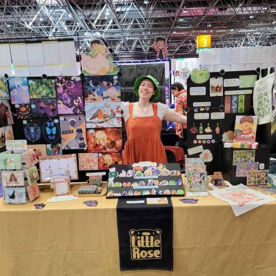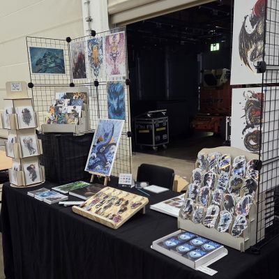 Ich habe jede Menge Sticker, Schlüsselanhänger, Magnete, Prints, Originale, Totebags, Buttons und anderes Tolles dabei.